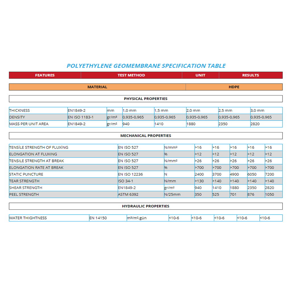En Düşük yoğunluklu polietilen hammaddeden yapılan göletlerde ve su depolarında kullanılan geomembran çeşididir. 1 – 1,2 – 1,5 – 2 – 2,5 – 3 mm kalınlıklarda istenilen renklerde üretilirler.